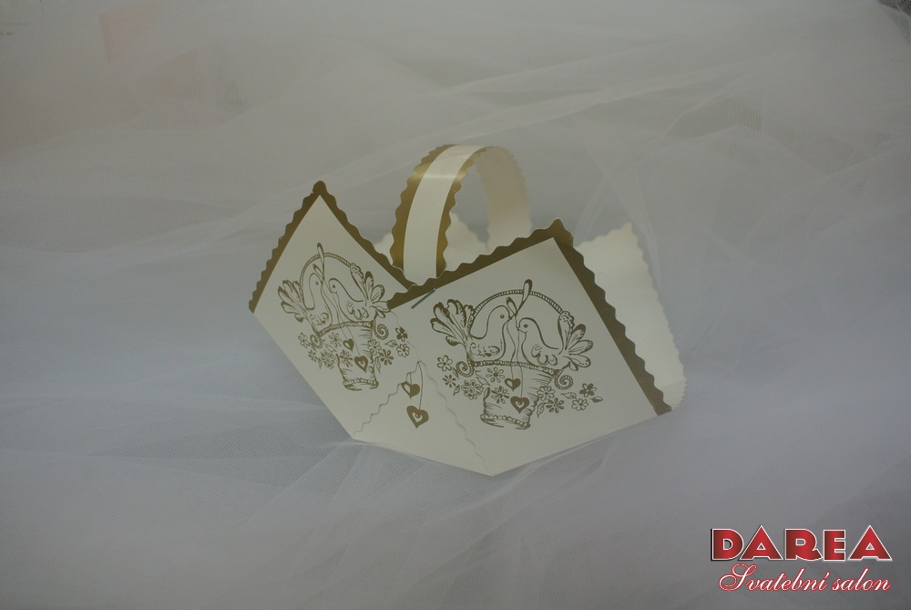Mezi nabízené papírenské zboží patří například ubrousky, manžety, tácky a celofány, košíčky na svatební koláčky, krabičky na výslušky (v následujících velikostech: 14x14, 18x18, 20x20, 22x22, 25x25 a 28x28). Dále nabízíme galanterii - stuhy, mašličky(ZDE), organzy, špendlíky, ad.